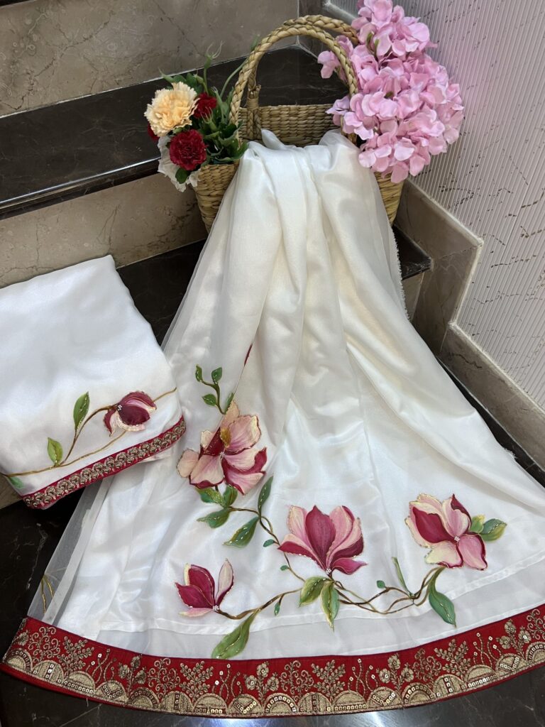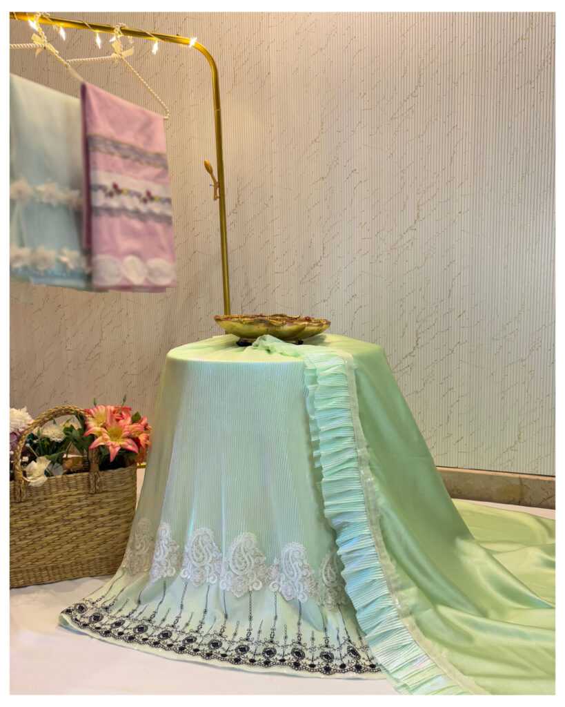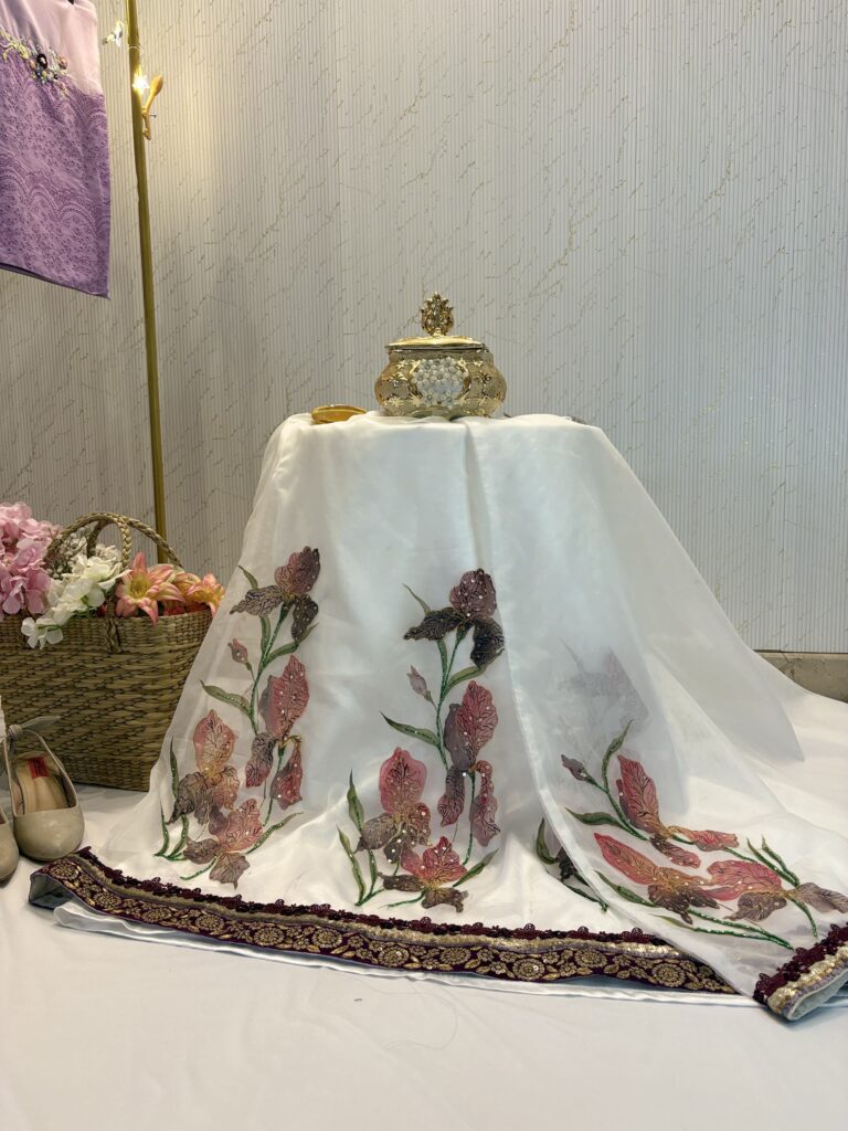 Arwa, the fabric is beautiful, and the detailed work throughout is impressive. I especially loved the moti work at the ends—such a lovely, elegant finishing touch. The craftsmanship is really impressive.
