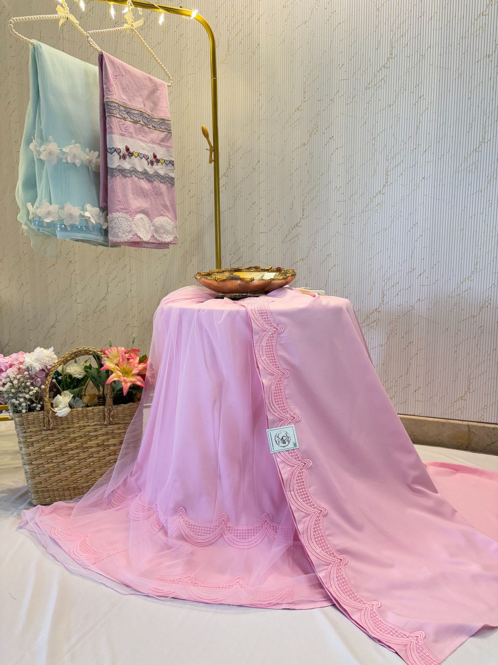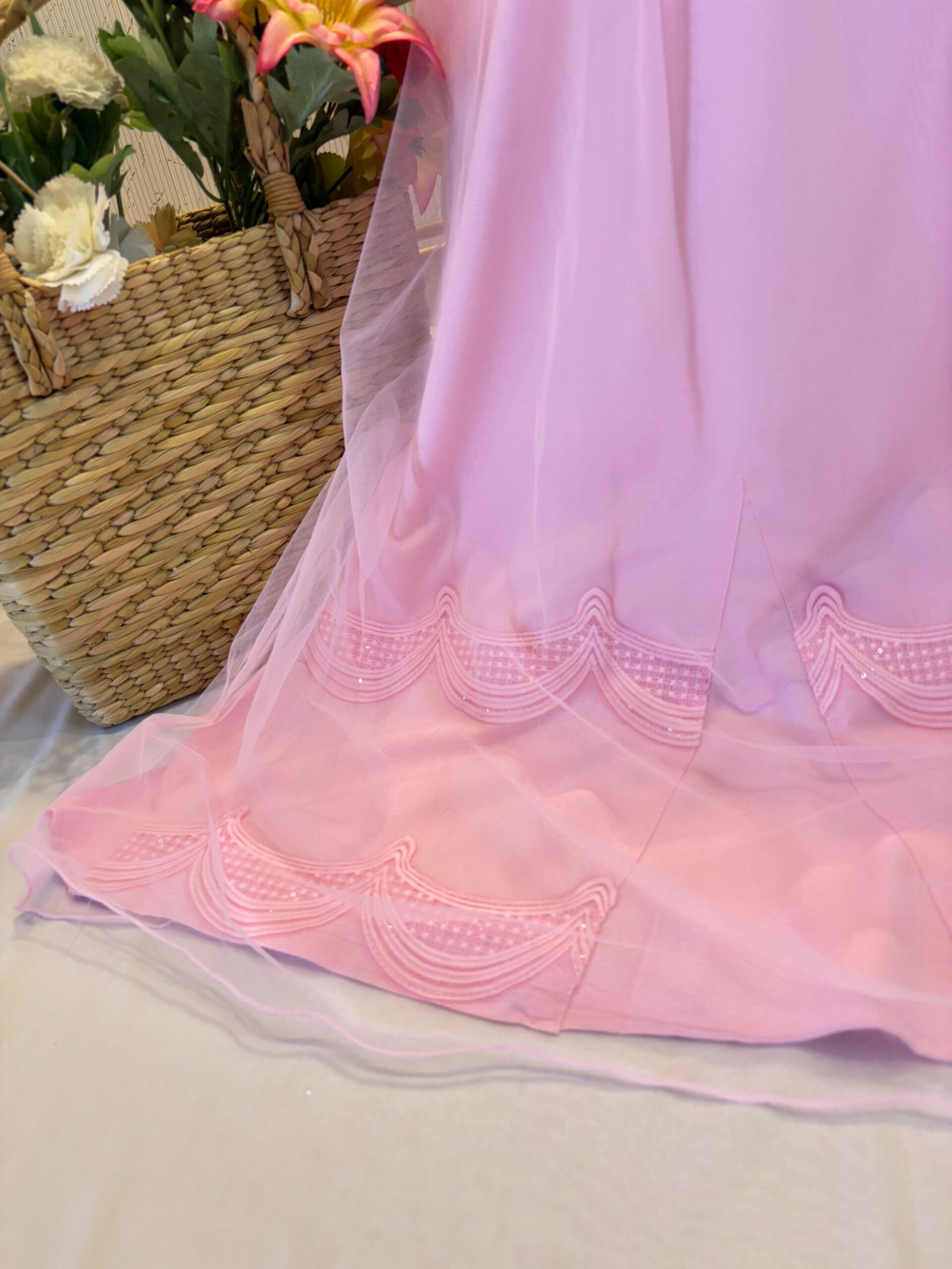 Baby pink with net godet