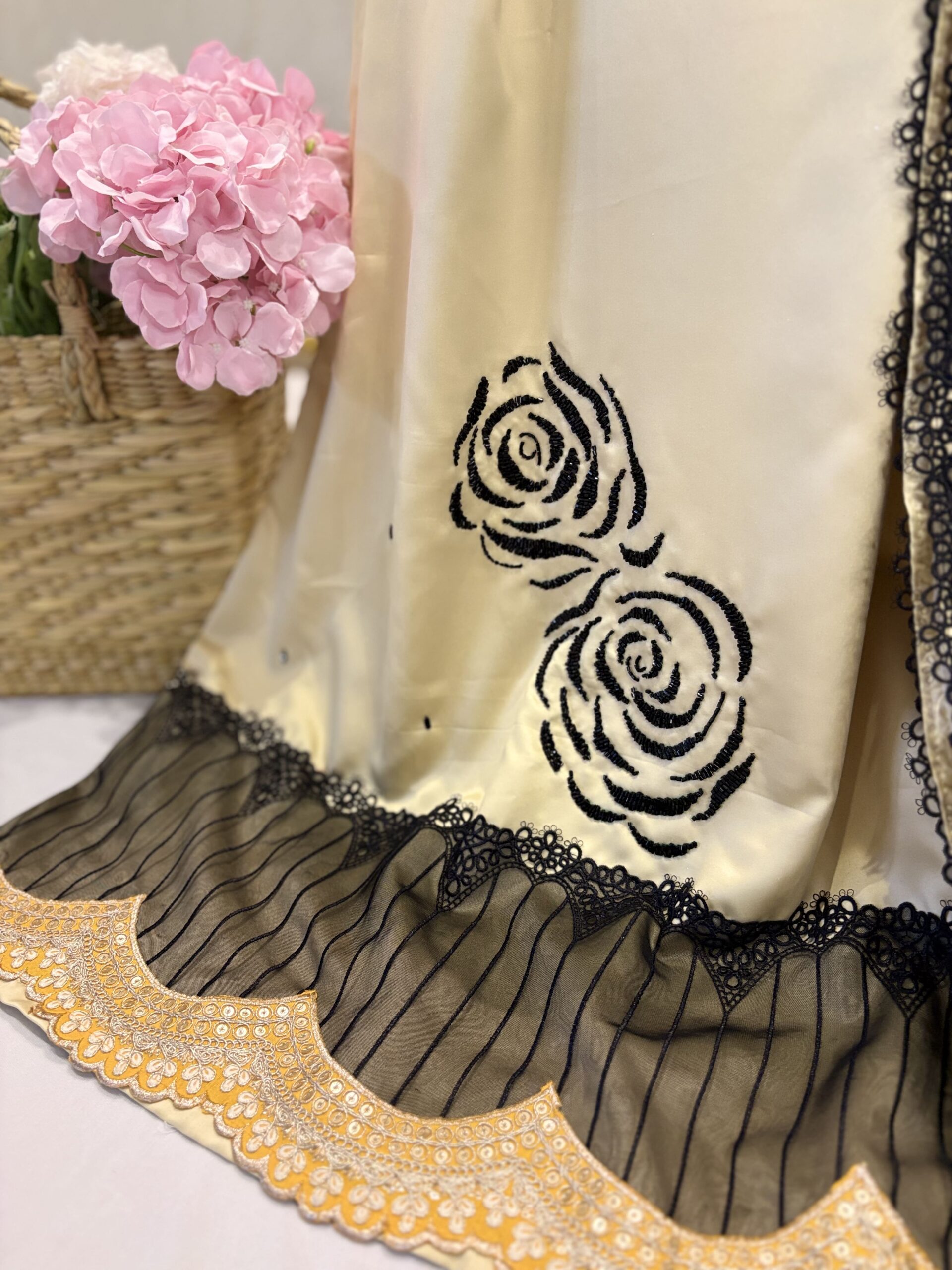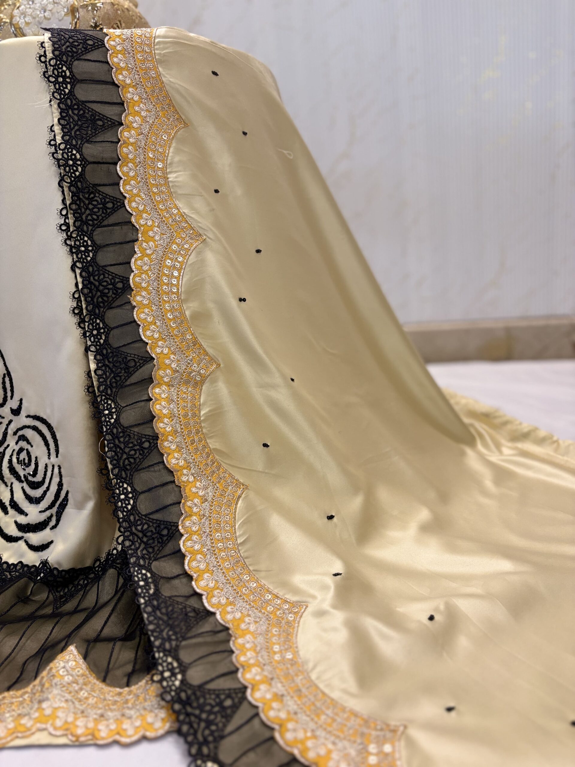 Golden rida with black aari work