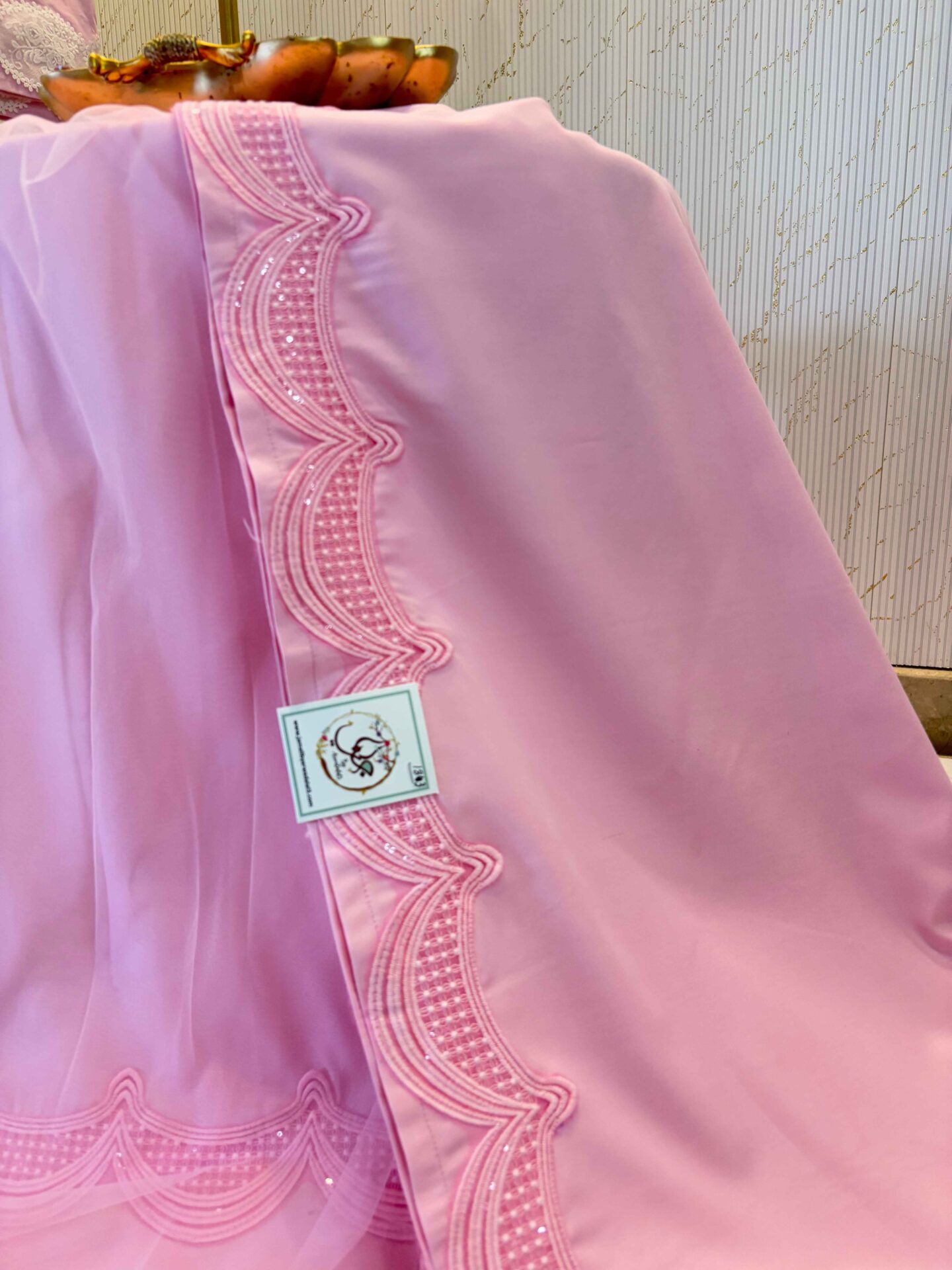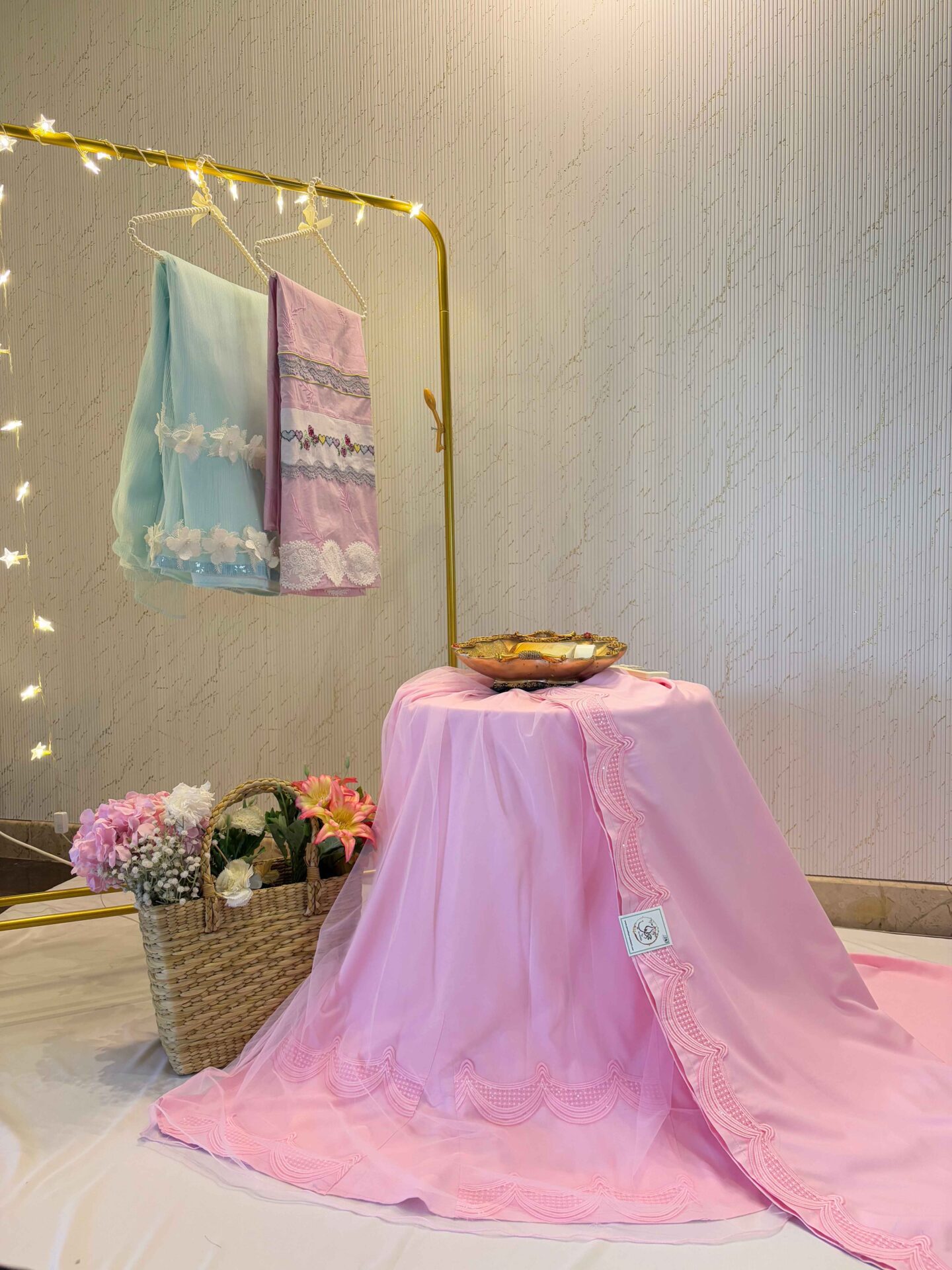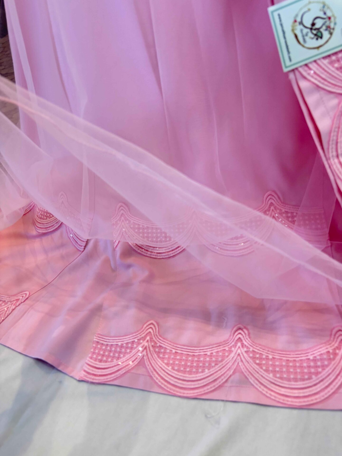 Wash Care Instructions – First wash: Dry Clean Only OR Hand Wash separately (without soaking). Avoid tumble drying – it can damage delicate lace trims and handwork. Use mild shampoos or liquid detergents for long-lasting freshness. Iron inside out, especially on handwork and painted areas. Pleated fabrics should not be ironed, except with low steam.
