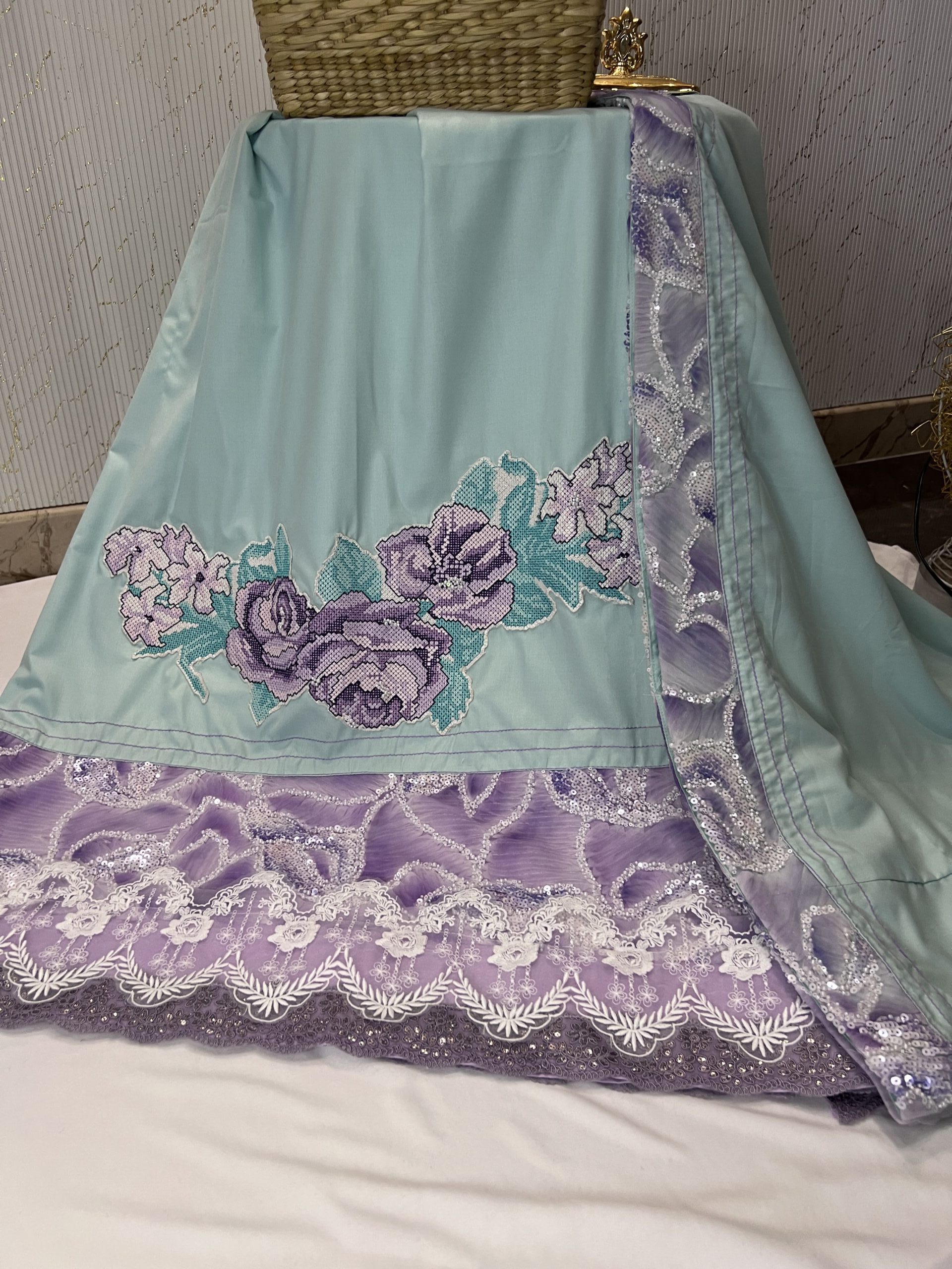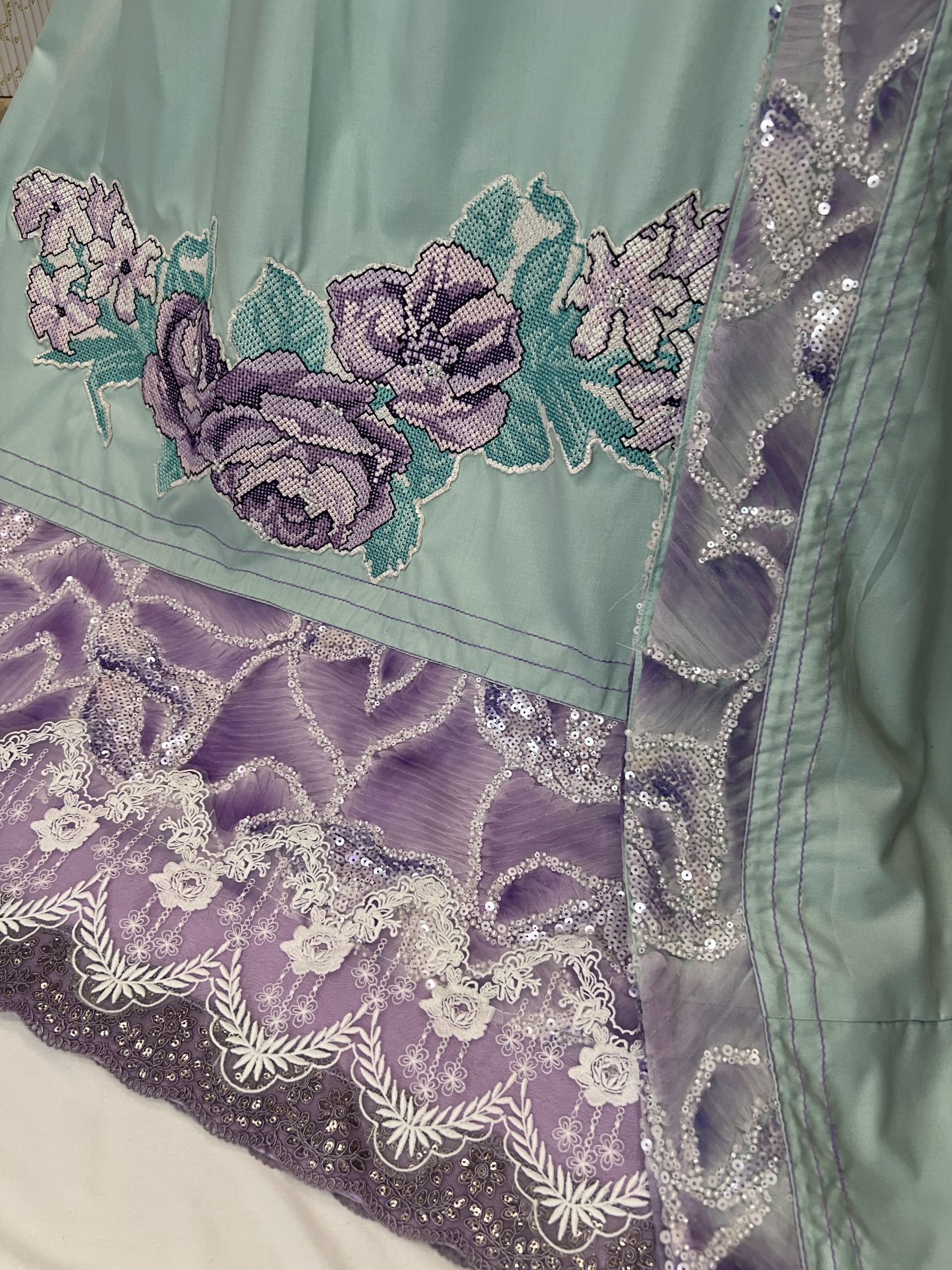 Mint green lilac cross stitch rida
