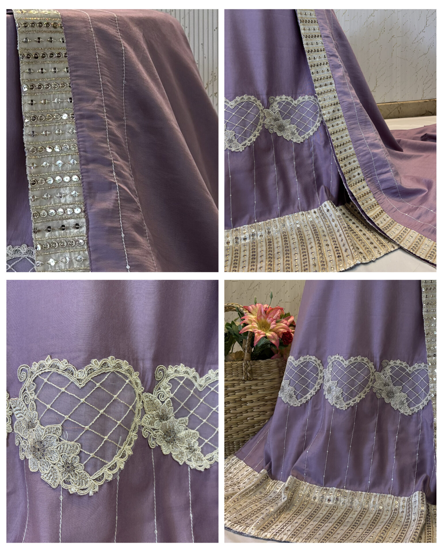 Lehanga: 35” width × 41” length (expect ~2” less after stitching in width)