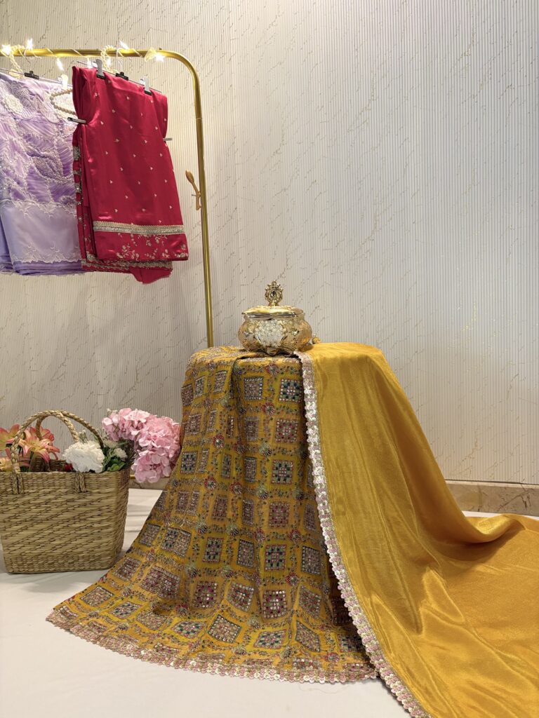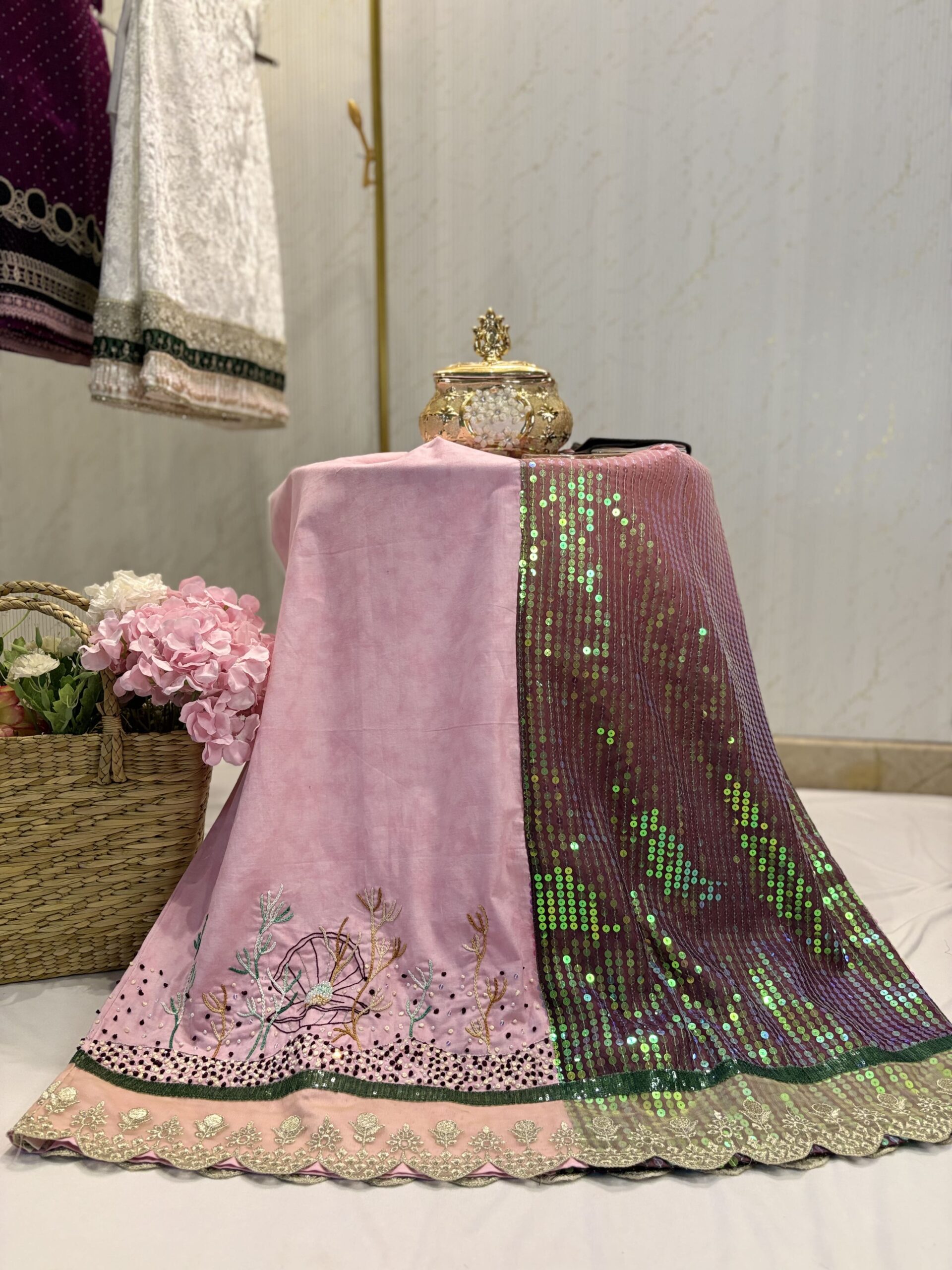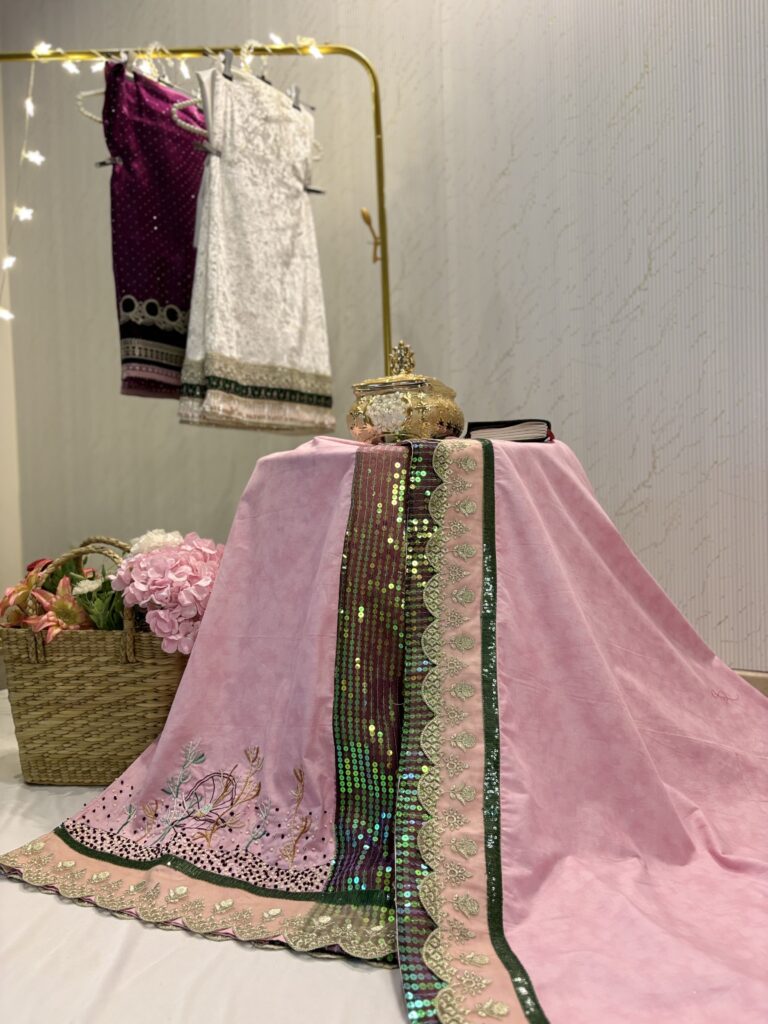 Be the first to review “Pink partywear rida with hand Embroidery and sequins”