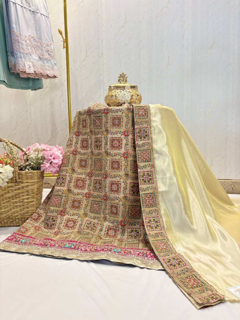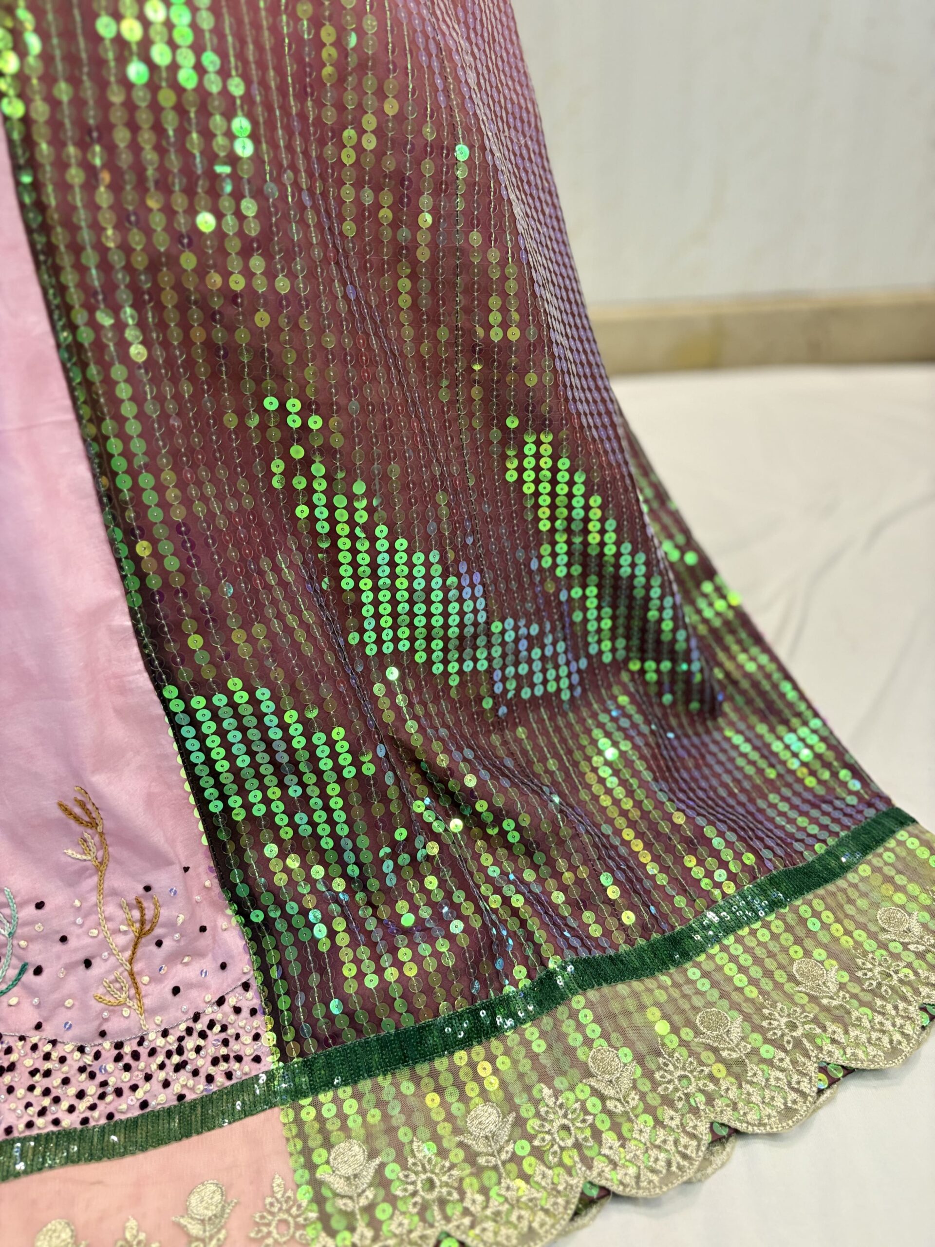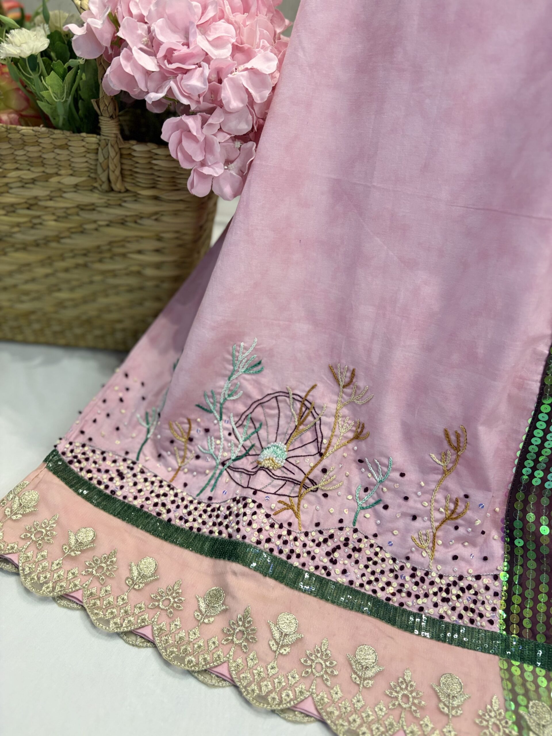 Pink partywear rida with hand Embroidery and sequins