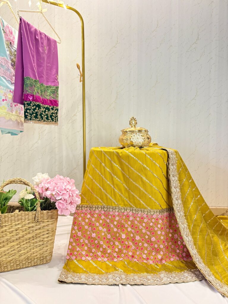 Quantity: One Lehanga + One Pardi (Standard Size) + Yok Piece (included)