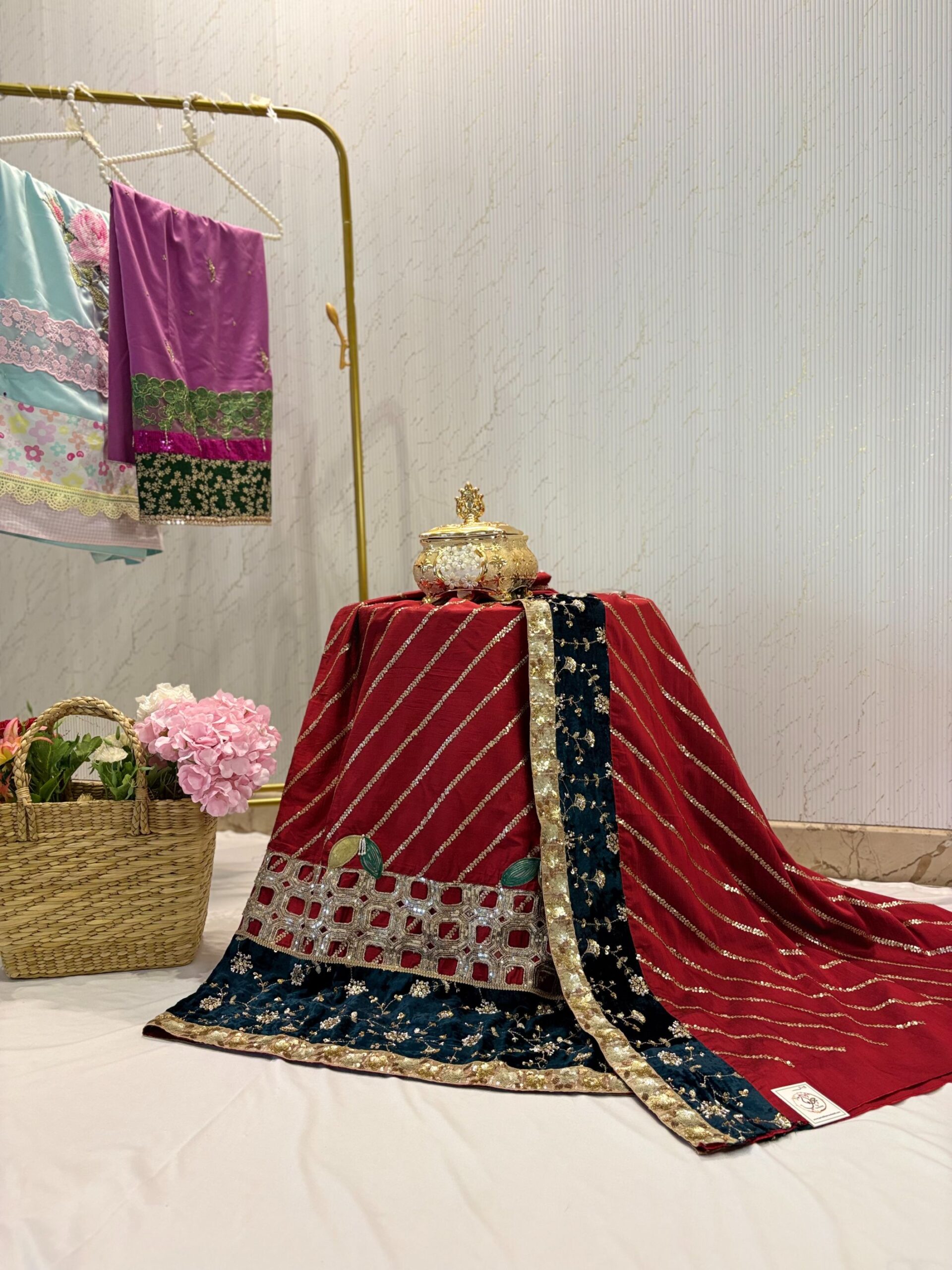 Quantity: One Lehanga + One Pardi (Standard Size) + Yok Piece (included)