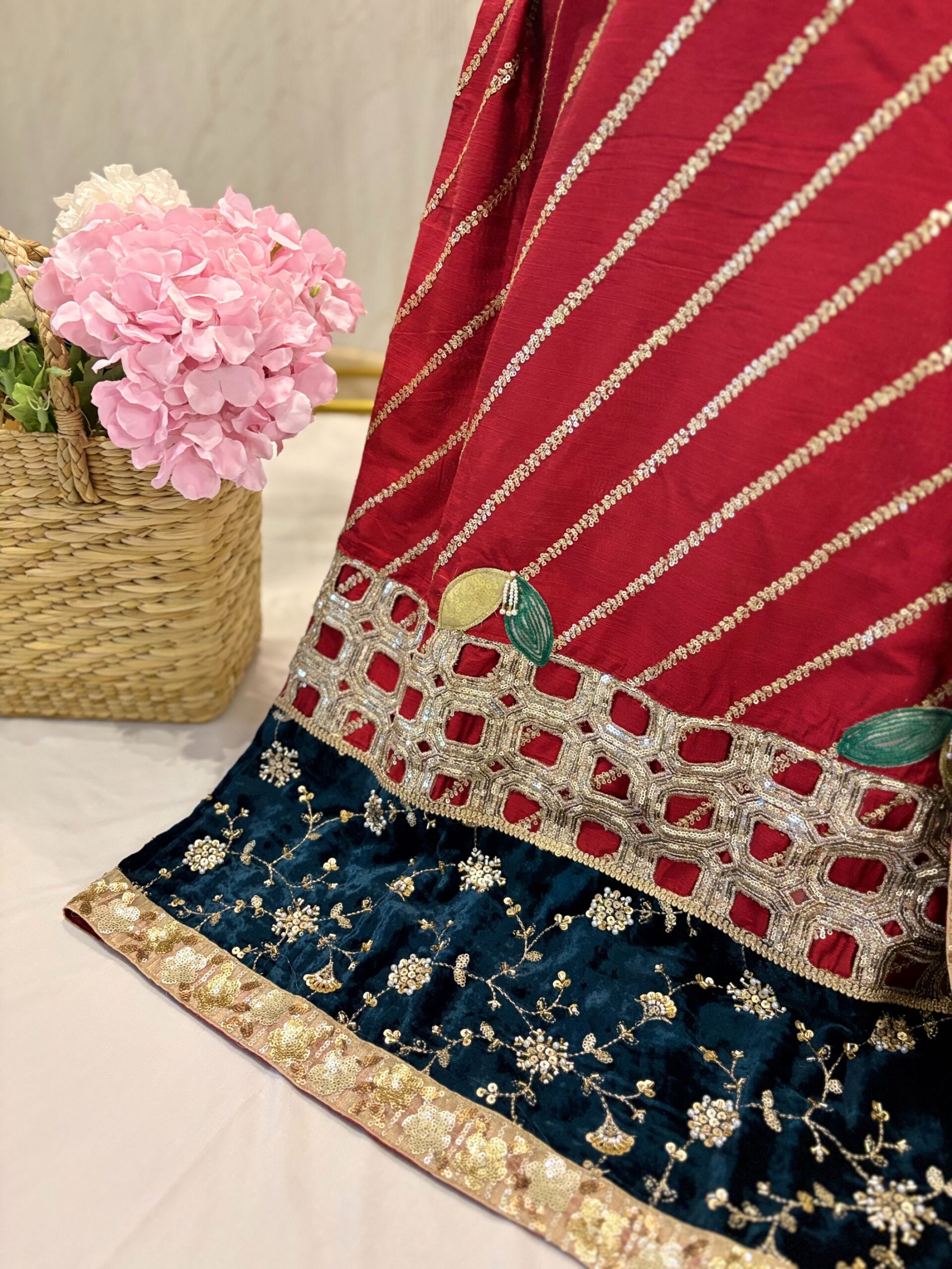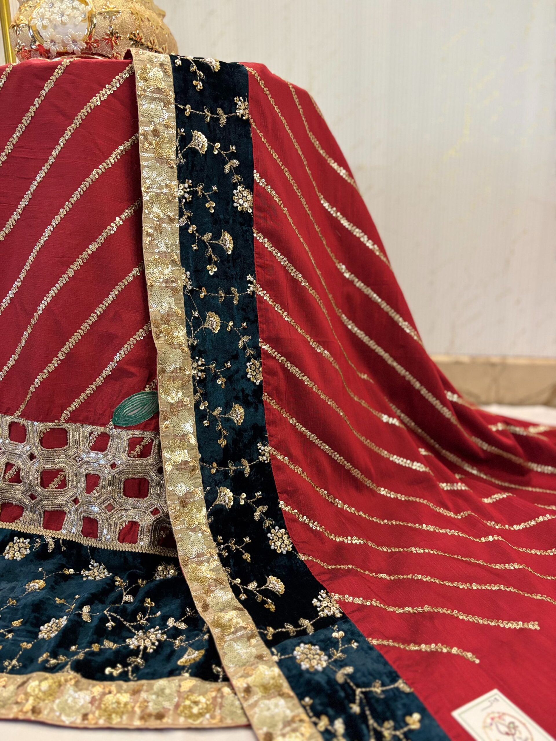 Lehanga: 35” width × 41” length (expect ~2” less after stitching in width)