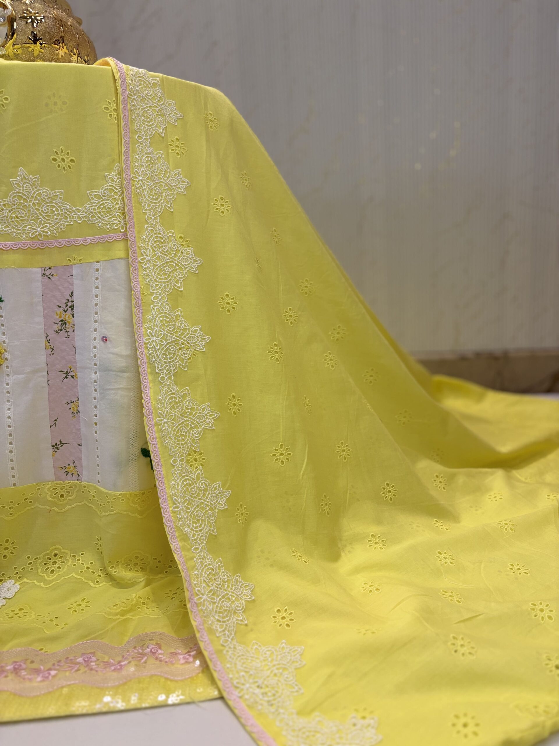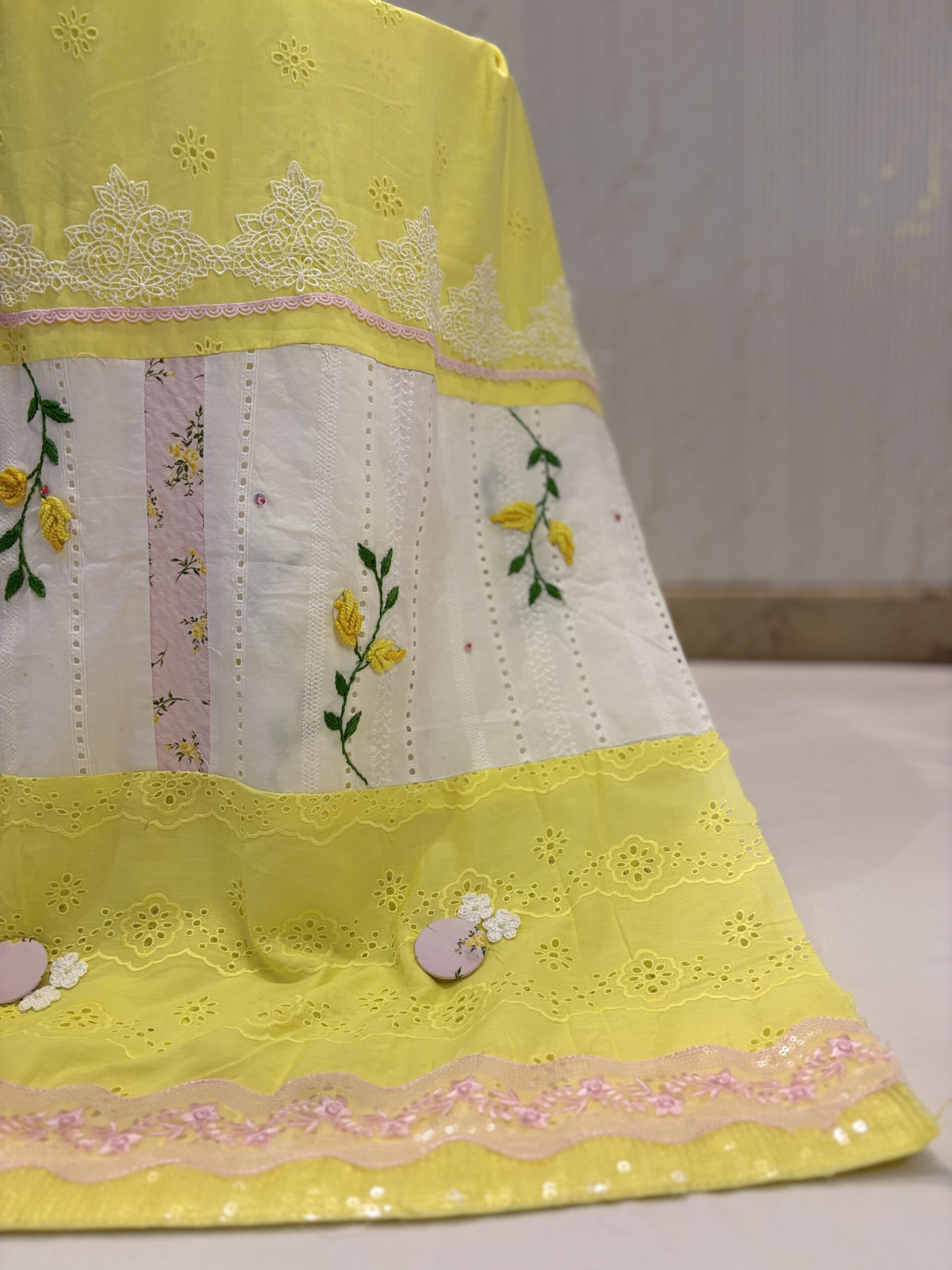 Yellow Hakoba with Crochet Work Rida( Buttons)