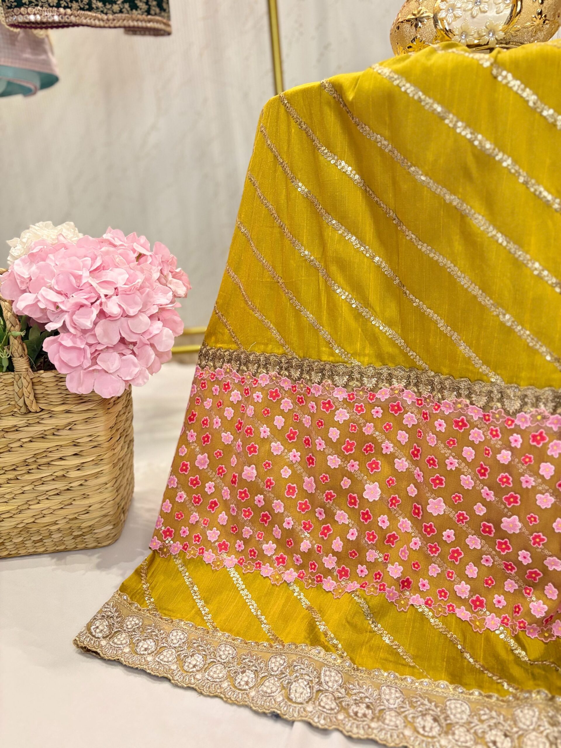 Lehanga: 35” width × 41” length (expect ~2” less after stitching in width)