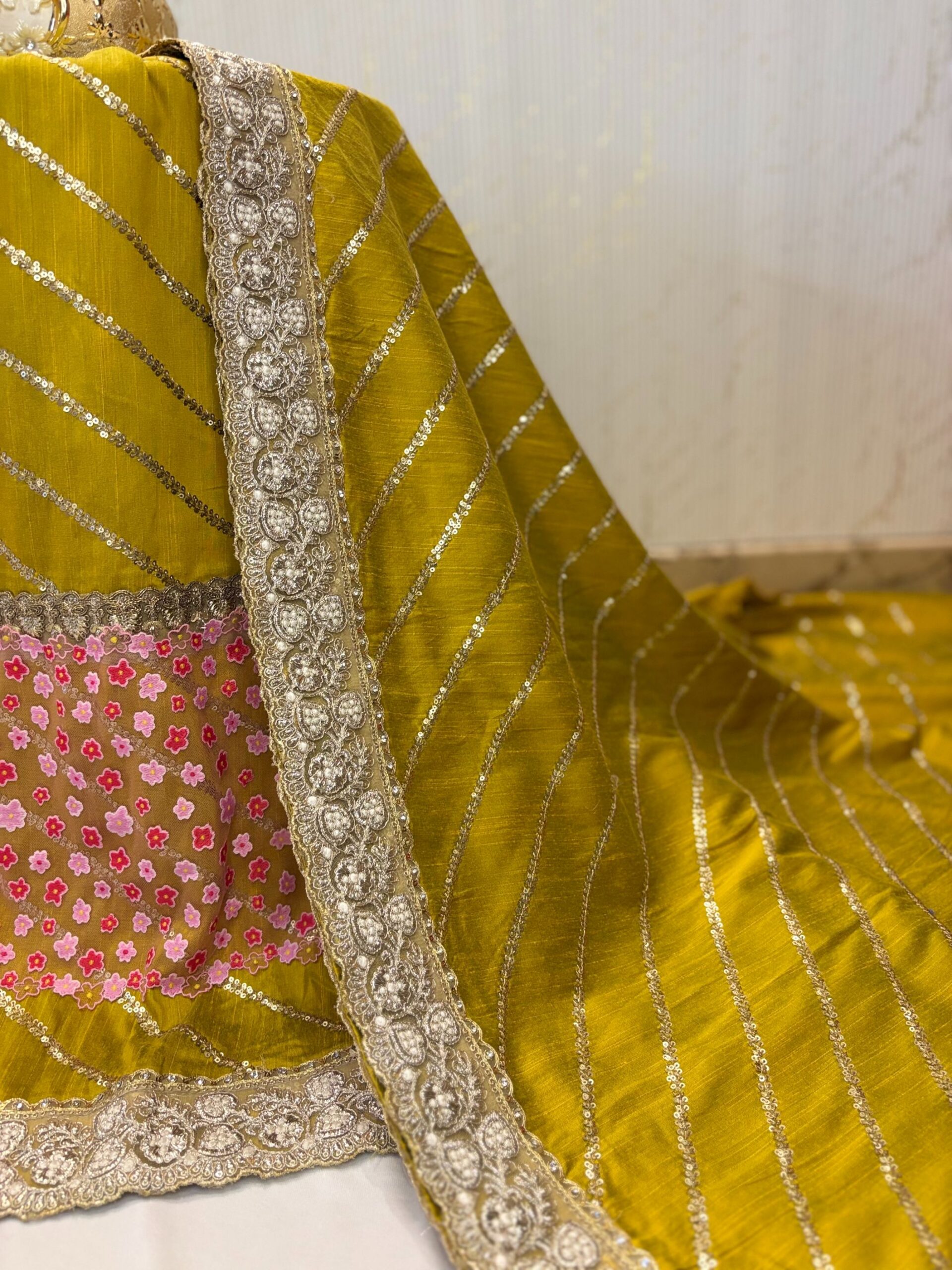 Quantity: One Lehanga + One Pardi (Standard Size) + Yok Piece (included)